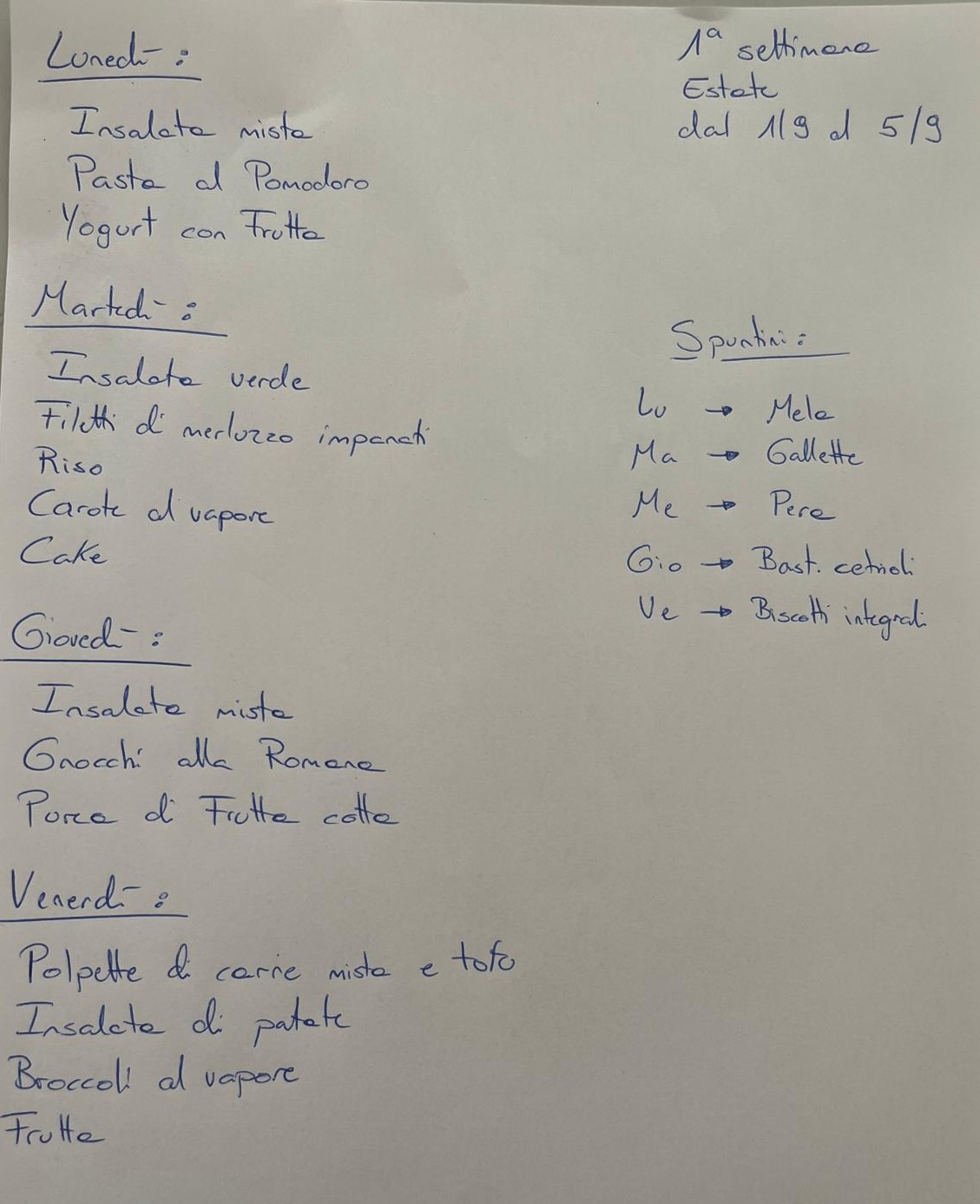 27.8.25 Menù della settimana – dal 1.9 al 5.9.2025