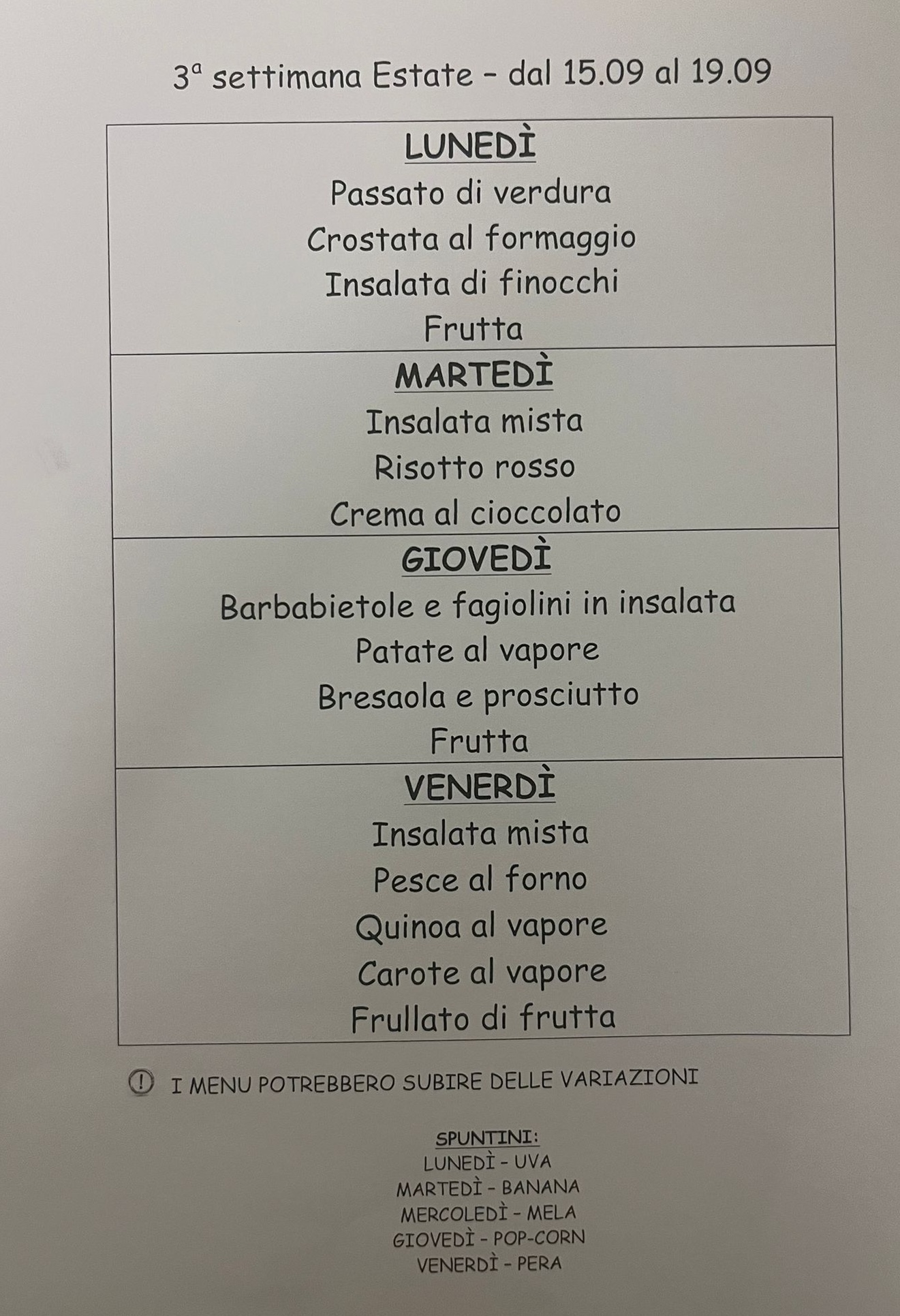 12.9.25 Menu della settimana dal 15.9 al 19.9.25