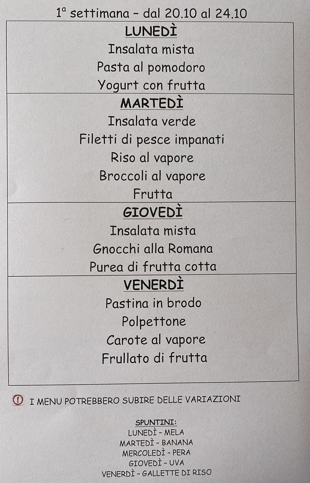 17.10.25 Menu della settimana dal 20 al 24.10.25
