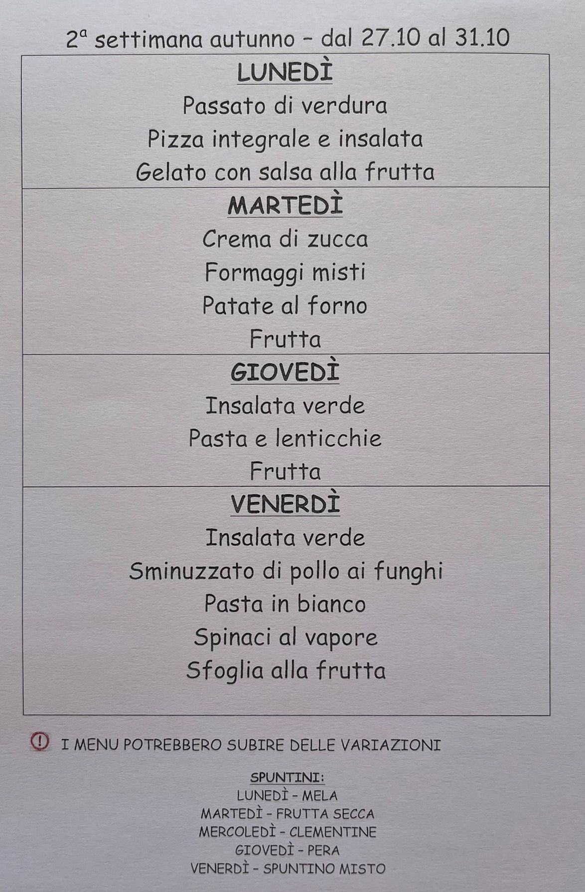 23.10.25 Menu della settimana dal 27 al 31.10.25