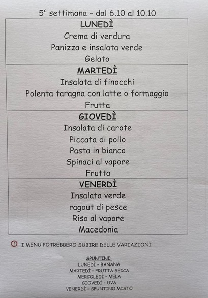 25.9.24 Menù 2025/2026 -> cfr. link associazione Kreiamoci, accesso solo ai genitori dei bambini iscritti al servizio.