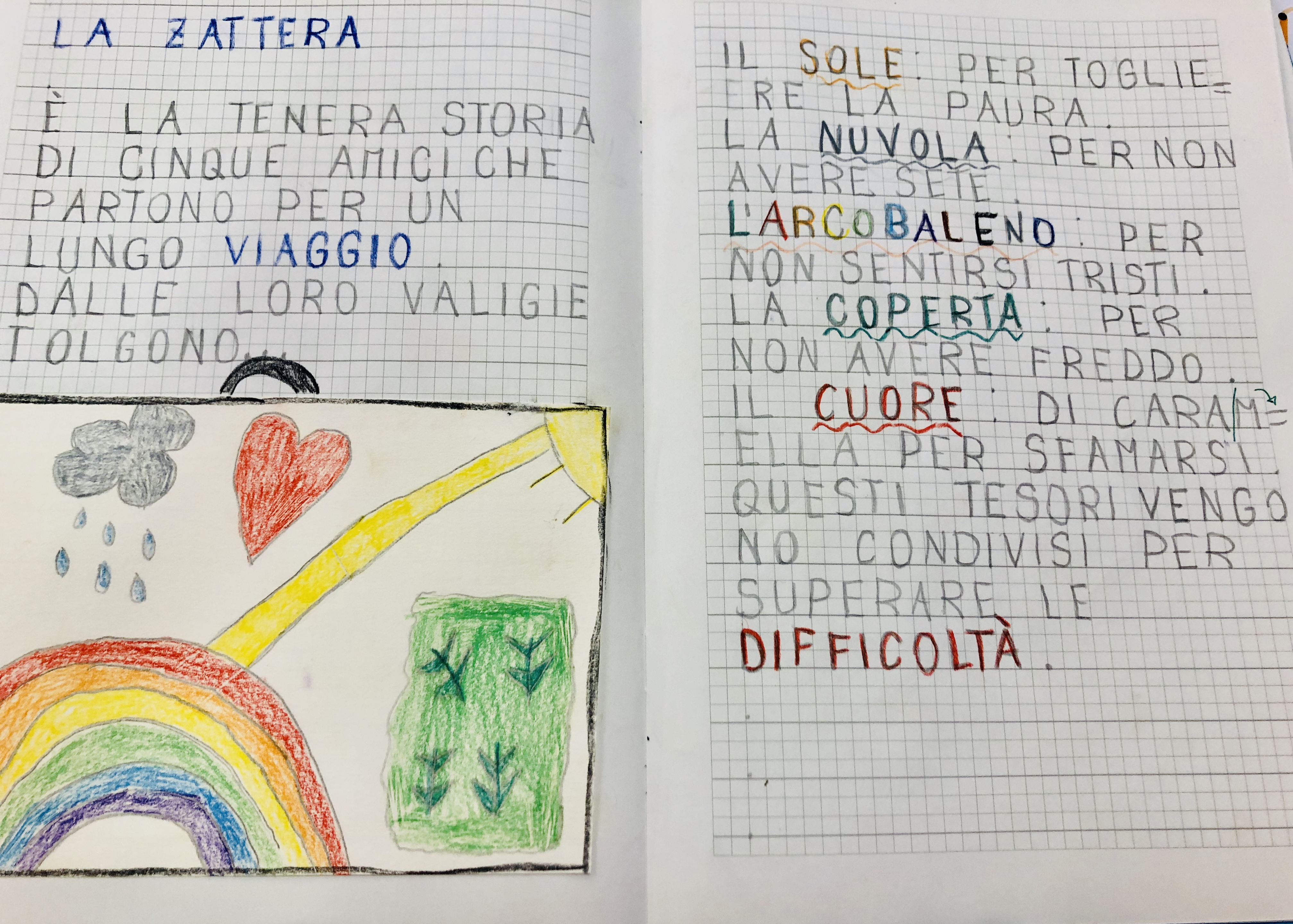 L’albo ha delle illustrazioni bellissime e la storia è portatrice di un messaggio semplice e importante: una zattera, sopra un mare difficile, e cinque amici consapevoli di poter affrontare il viaggio, fatto di difficoltà e speranza, poiché capaci di condividere i loro tesori e di fare squadra, di essere un gruppo. Bellezza vera.