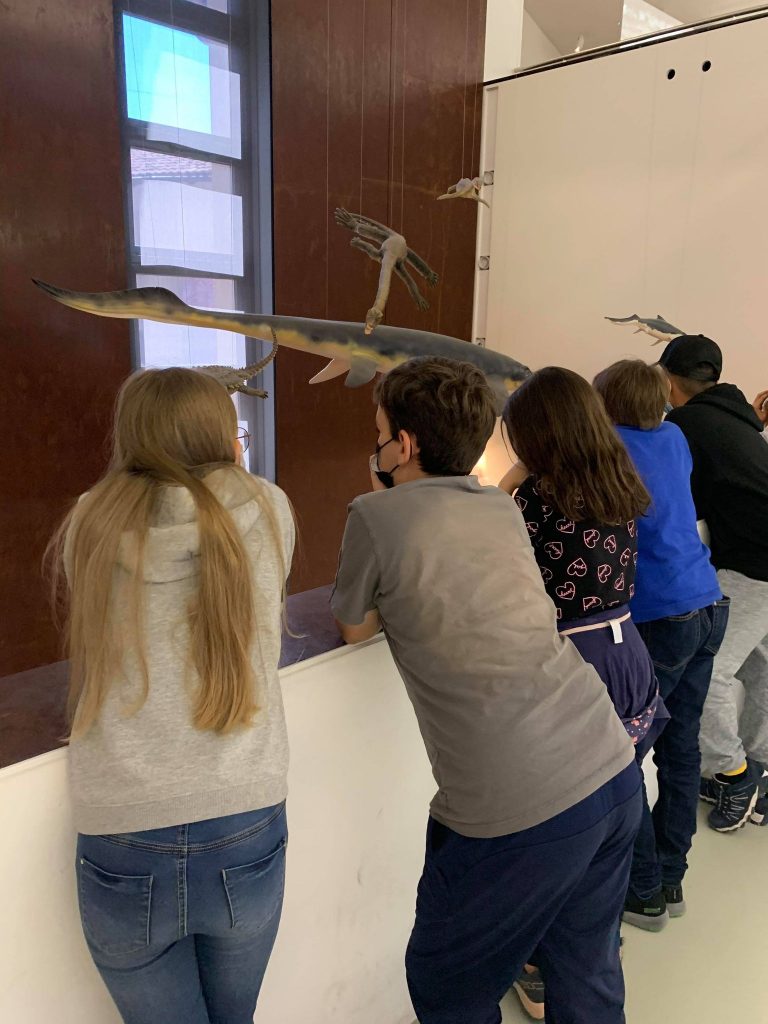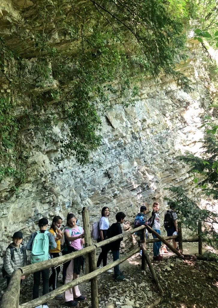 La nostra giornata è cominciata con una trasferta in pulmino fino a Meride, più precisamente al Museo dei Fossili del Monte San Giorgio, patrimonio dell’UNESCO.Abbiamo potuto osservare da vicino le rocce caratteristiche del Monte San Giorgio… La guida ha catturato da subito la nostra attenzione: eccoci durante un breve viaggio nel triassico!…Guardando il “mare del Monte San Giorgio” attraverso la realtà virtuale!La giornata è proseguita con una passeggiata attraverso il sentiero geo-paleontologico……Fino a raggiungere la Terrazza della Val Mara……Dove sono stati rinvenuti numerosi fossili visti al museo, risalenti al triassico…Infine abbiamo visitato il paese di Meride, sotto un sole stupendo!Tanti saluti dalla VB……E dalla VA !!!